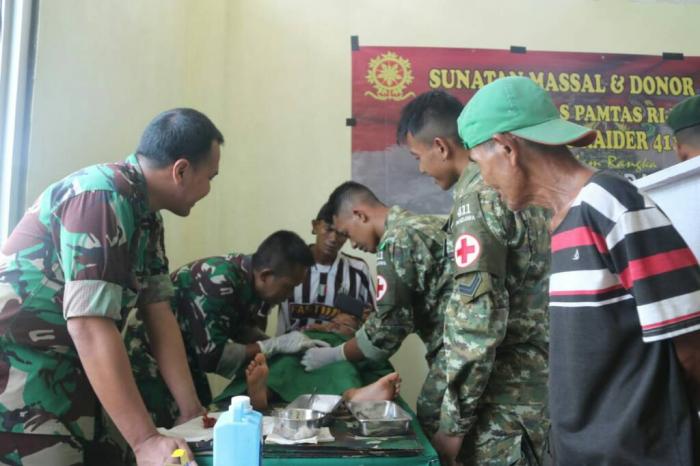 "Sunatan massal ini juga sebagai upaya kami untuk semakin mendekatkan diri dengan masyarakat perbatasan RI-PNG, serta membantu masyarakat terutama yang kurang mampu dengan harapan semakin mempererat tali silaturahmi dan mewujudkan kemanunggalan TNI-Rakyat," ujarnya.