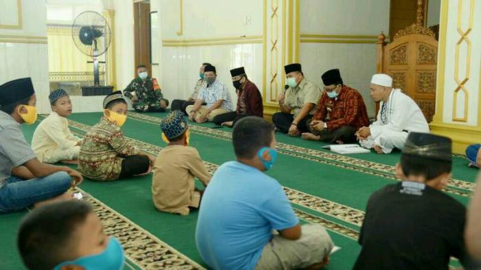 Usai meninjau kesiapan lokasi groundbreaking Sport Center Sumut, rombongan atas nama Gubernur Sumut menyantuni 100 lebih anak yatim piatu di Masjid Al-Jihad, Desa Sena. Ke-100 anak yatim piatu tersebut menerima santunan berupa alat sekolah dan uang saku.