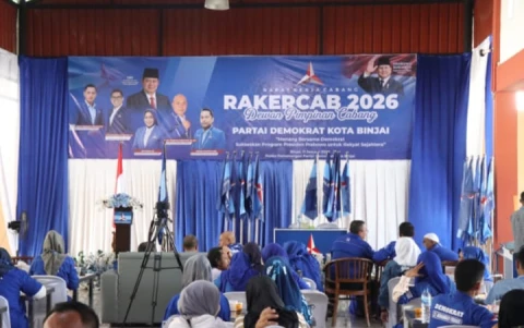 Mewakili Walikota Binjai, Asisten Bidang Pemerintahan dan Kesejahteraan Rakyat Sekretariat Daerah Kota Binjai, Putri Syawal Br. Sembiring, S.E. menghadiri Rapat Kerja Cabang (Rakercab) Tahun 2026 yang digelar oleh Dewan Pimpinan Cabang (DPC) Partai Demokrat Kota Binjai di Posko Pemenangan Partai Demokrat Kota Binjai, Minggu (11/1).