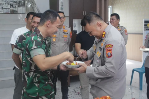 Sementara itu, AKBP Choky Sentosa Meliala dalam sambutannya menyampaikan ucapan selamat ulang tahun kepada seluruh prajurit TNI, seraya berharap keharmonisan dan keakraban TNI-Polri terus terjalin erat. “Kami keluarga besar Polres Labuhanbatu mengucapkan Selamat Ulang Tahun TNI ke-80, TNI Prima, TNI Rakyat, Indonesia Maju. Semoga sinergitas TNI-Polri semakin kokoh dalam memberikan pengabdian terbaik kepada bangsa dan negara,” ujarnya. Kegiatan diakhiri dengan foto bersama dan makan bersama dalam suasana penuh kehangatan, menandai eratnya tali silaturahmi antara dua institusi penjaga keamanan bangsa tersebut.