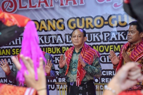 "Ambil peran, jadilah pewaris dan pelestarian budaya! Belajarlah nilai-nilai kearifan lokal yang terkandung dalam setiap tradisi, karena di sanalah kita belajar tentang hormat kepada orang tua, kebersamaan, dan kepedulian terhadap sesama," tegas Sekretaris Daerah (Sekda) Deli Serdang, Dedi Maswardy SSos MAP di acara Kerja Tahunan Kota Lubuk Pakam Sekitarnya 2025, Gendang Guro-Guro Aron bertajuk, Sikuning Kuningen Gelah Radu Megersing di Lapangan Tengku Raja Muda, Kecamatan Lubuk Pakam, Sabtu malam, 8 Oktober 2025.