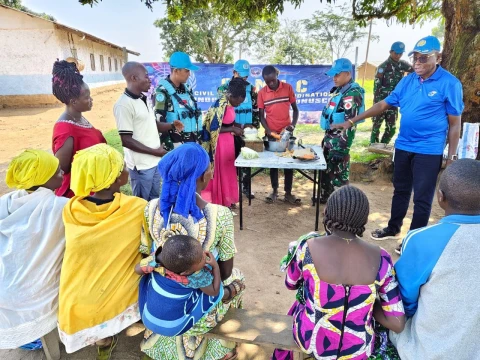 Tim juga membagikan air bersih dan pemeriksaan kesehatan gratis sembari patroli siang ke Desa Robingo, serta berinteraksi langsung dengan warga. Selama kegiatan, tim mendapat ucapan terima kasih atas kehadiran dan aksi nyata prajurit Monusco tersebut.