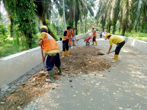 Penimbunan jalan dilakukan atas kerja sama antara Dinas SDABMBK, pemerintah kecamatan, desa, masyarakat, dan pengusaha setempat.