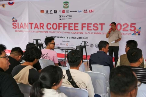 Wali Kota Pematangsiantar Wesly Silalahi diwakili Sekretaris Daerah (Sekda) Junaedi Antonius Sitanggang SSTP MSi di acara Pembukaan Siantar Coffee Fest 2025, Sabtu (08/11/2025) menyampaikan, Coffee Fest 2025 bukan hanya ajang menikmati minuman favorit, namun menjadi wadah bagi pemuda untuk berkreasi, berinovasi, dan berjejaring untuk meningkatkan kewirausahaannya.