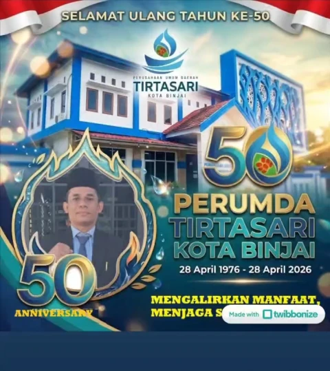 Perusahaan Umum Daerah Air Minum (Perumda) Tirtasari Binjai genap berusia 50 tahun. Diusianya yang sudah setengah abad ini (Berdiri sejak 28 April 1976) Perusahaan penyedia air bersih ini terus fokus pada peningkatan pelayanan dan optimalisasi distribusi air bagi masyarakat Kota Binjai.