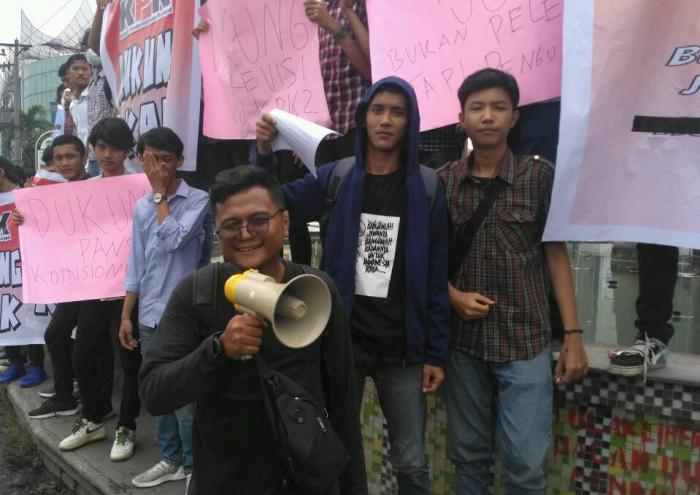 Mahasiswa kota Medan mendukung revisi UU KPK, Sabtu (7/9).