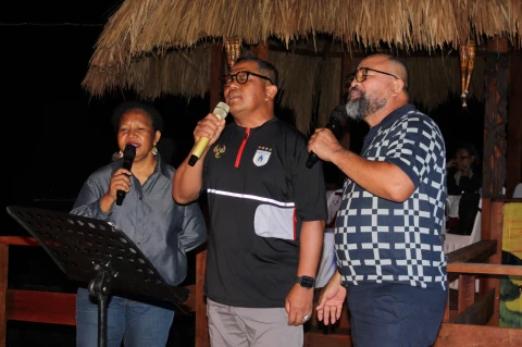 Komandan Kodaeral X Mayjen TNI (Mar) Werijon, M.Han., CIQnR., CIQaR., menggelar makan malam bersama sebagai bentuk kebersamaan, komunikasi, dan penguatan sinergi dengan berbagai elemen di Jayapura, Jumat (16/1/2026).