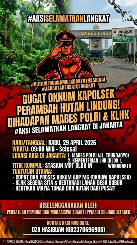 "Kami mencium aroma 'tahu sama tahu' di daerah. Hutan lindung yang seharusnya menjadi penyangga kehidupan masyarakat Langkat justru beralih fungsi menjadi perkebunan sawit pribadi oknum aparat. Jika di daerah hukum tersandera relasi kuasa, maka kami meminta Jakarta untuk memutus rantai impunitas tersebut," tegas Oza dalam keterangannya di Jakarta, Sabtu (25/4).