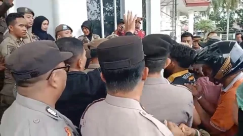 Karena tidak ada yang menerima, warga akhirnya merengsek untuk masuk kedalam gedung Bupati Asahan. Namun, dihalang oleh Sat Pol PP. Karena tidak ada menerima mereka, massa langsung menerobos dengan mendorong petugas.