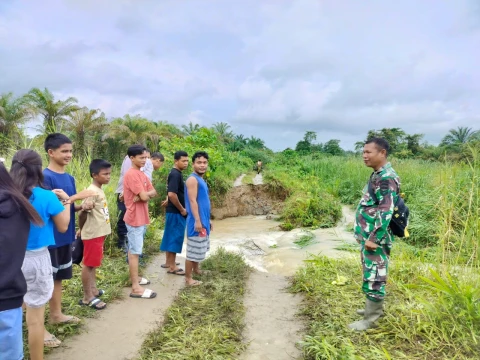 Babinsa Koramil 01/AK Tinjau dan Bantu Masyarakat Tangani Tanggul Jebol Akibat Luapan Air Sungai