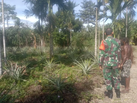 Komsos Dengan Petani, Babinsa Kuala Kencana Beri Motivasi Kepada Petani Nanas