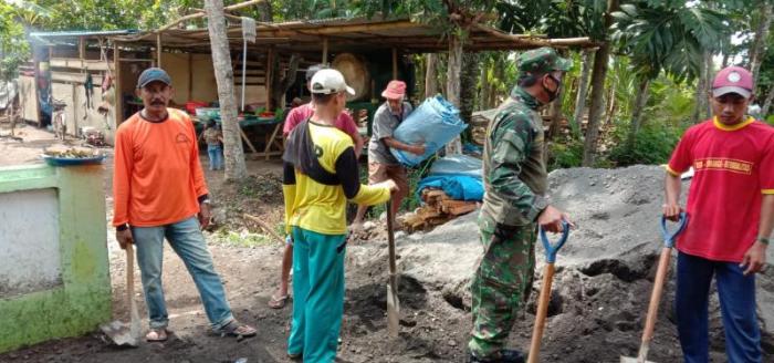 Babinsa Koramil 0824/15 Bangsalsari Bantu Kerja Bakti Masyarakat Cor Masjid Al Muhtahdin