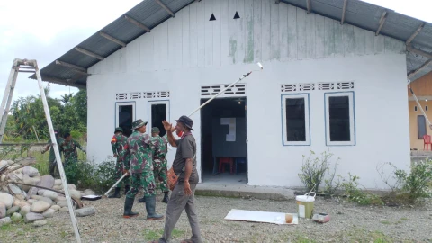 Semangat Gotong Royong, Satgas TMMD 126 Lanjutkan Pengecatan dan Pemasangan Keramik Gereja Advent