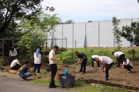 Jajaran Pegawai Lapas Rantauprapat Laksanakan Gotong Royong Bersihkan Lingkungan Kerja