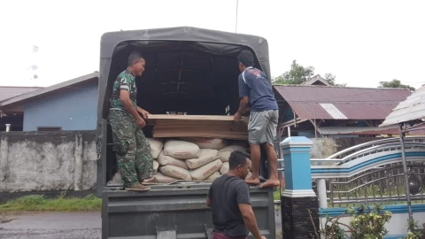 Gotong Royong Angkut Material Pembangunan TMMD Ke-124 Kodim 1501/Ternate