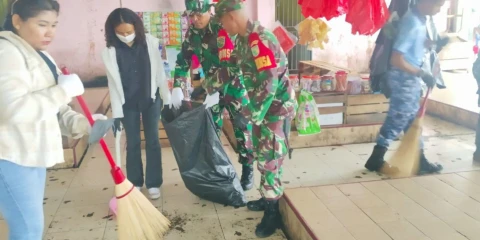 Karya Bakti Pembersihan Lingkungan Pasar Jelang Peringatan HUT Ke-80 TNI di Mimika