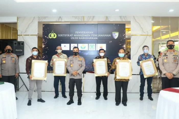 Kabaharkam Wakili Kapolri Serahkan Sertifikat Gold Reward Objek Vital Nasional