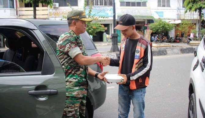 Jum'at Berkah, Kasdim 0209/LB Berbagi Nasi Kotak dengan Abang Becak dan Petugas Parkir