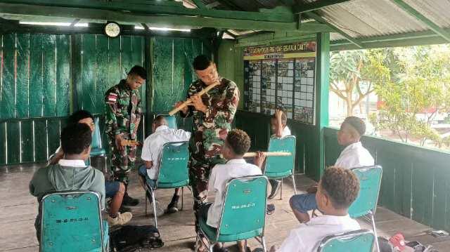 Kreativitas Satgas Yonif 126/KC, Latihkan Musik Kepada Anak-Anak Perbatasan