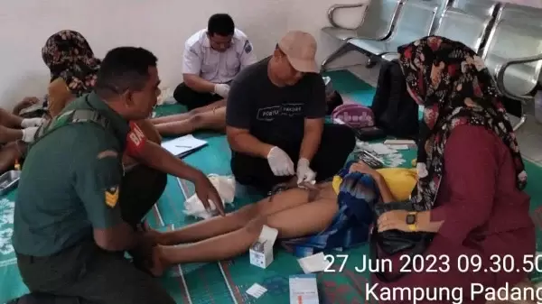 Babinsa Koramil 09/NL Dampingi Anak Warga Sunat Massal di Puskesmas Pangkatan