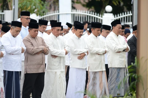 Pj Gubernur Sumut Salat Idulfitri Bersama Ribuan Masyarakat di Halaman Rumah Dinas