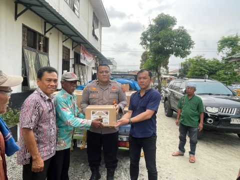 Polda Maluku Salurkan Bantuan Sembako kepada Korban Banjir di Medan Helvetia
