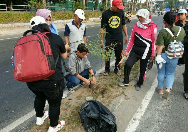 Warga Tanami Pohon, Bersihkan dan Bentuk Bunga di Sepanjang Jalan Krakatau Medan