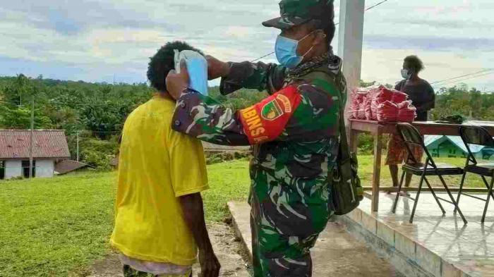 Cegah Penyebaran Covid-19, Babinsa Koramil 1711-03/Tanah Merah Bagikan Masker