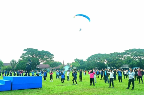 Drum Band Siswa Taruna Politeknik Penerbangan Makassar Meriahkan CFD Lanud Sultan Hasanuddin