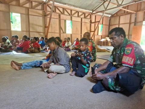 Koramil Tembagapura Berikan Bantuan Kepada Jemaat dan Gereja di Kampung Kimbeli