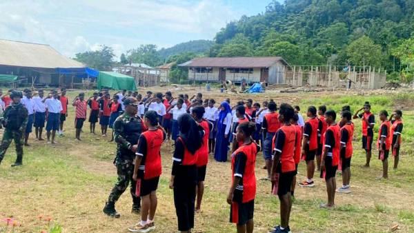 Disiplin Adalah Nafasku, Itulah Kekompakan Satgas YR 142/KJ dan Babinsa Dengan Siswa SMPN 1 Dabra