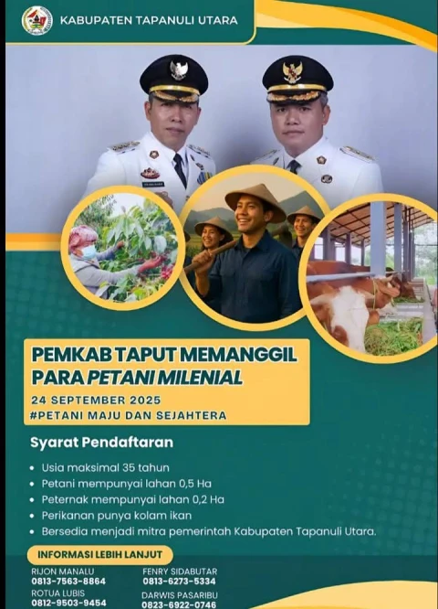 Bupati Tapanuli Utara Dorong Petani Milenial Jadi Penggerak Utama Pertanian Modern dan Ketahanan Pangan