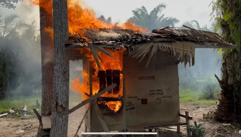 Kodim 0204/DS dan Yonif 121/MK Bakar Lapak Judi Dadu dan Sabung Ayam di Jati Baru Deliserdang
